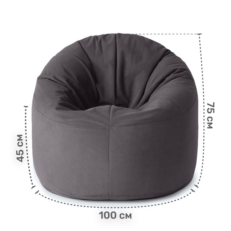 Кресло бескаркасное "Лаунж Гранд" Темно-серый, размер 4 XL, велюр