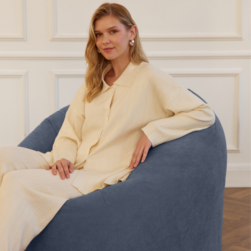 Стильное и невероятно комфортное бескаркасное кресло станет любимым местом для отдыха дома. Благодаря мягкой посадке оно аккуратно повторяет форму тела, поддерживает спину и позволяет полностью расслабиться после долгого дня.