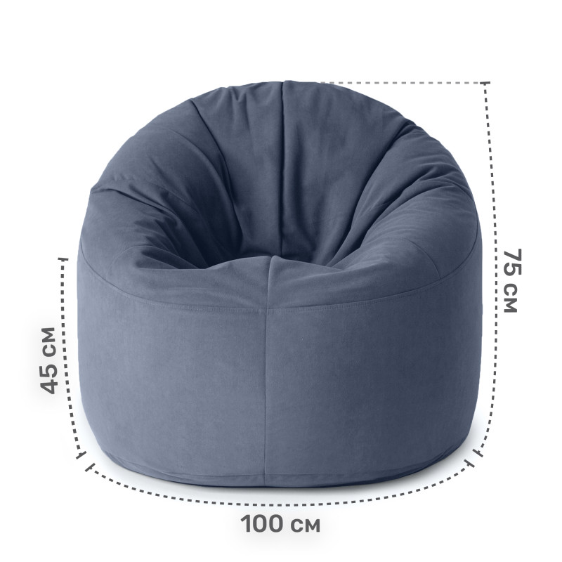 Кресло бескаркасное "Лаунж Гранд" Пыльно-синий, велюр