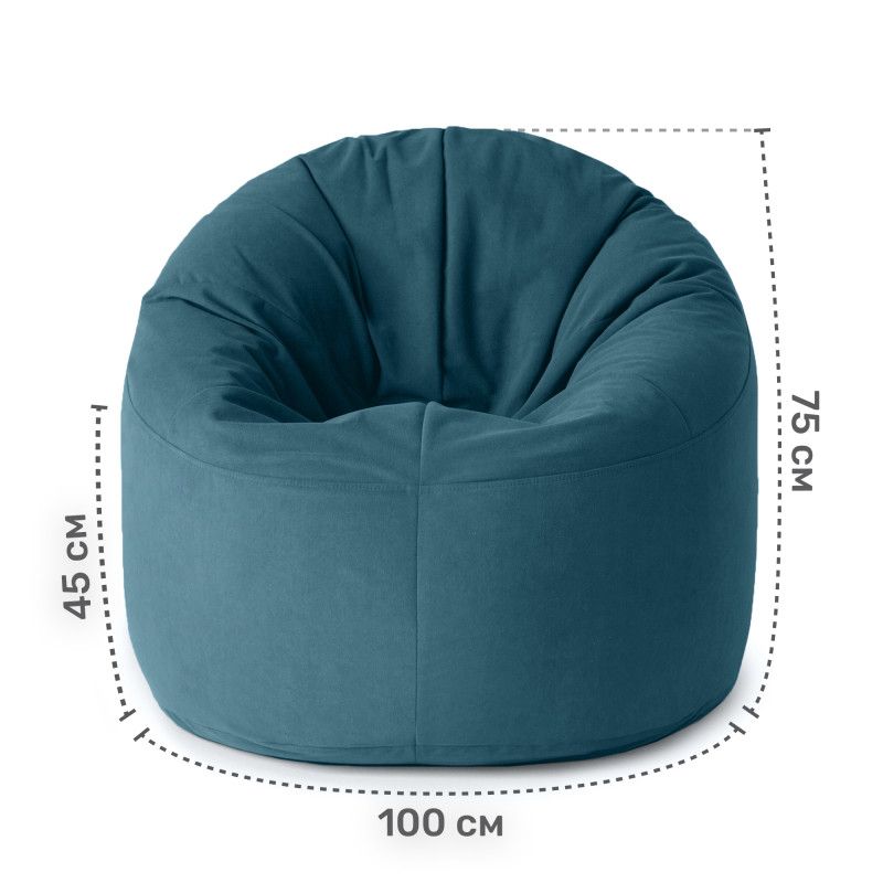 Кресло бескаркасное "Лаунж Гранд" Глубокая бирюза, размер 4 XL, велюр