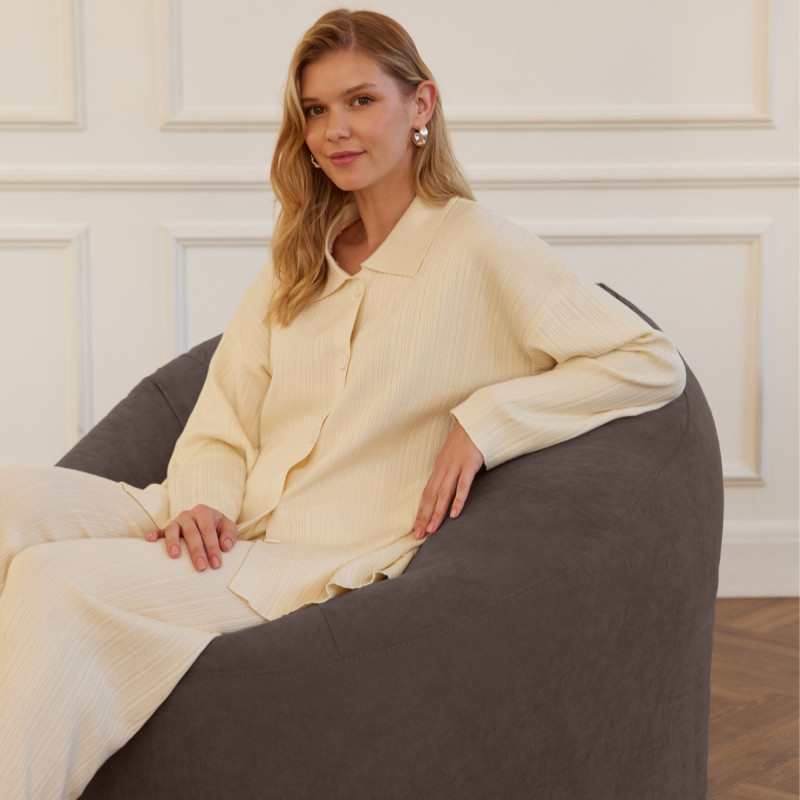 Стильное и невероятно комфортное бескаркасное кресло станет любимым местом для отдыха дома. Благодаря мягкой посадке оно аккуратно повторяет форму тела, поддерживает спину и позволяет полностью расслабиться после долгого дня.