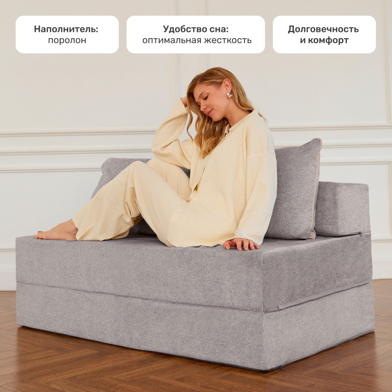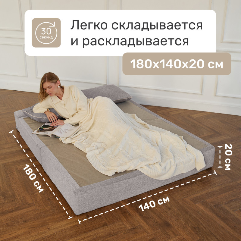 Бескаркасный Диван-кровать Светло-серый, букле