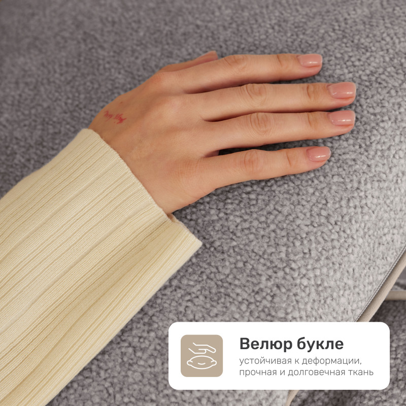 Обивка из букле придаёт мебели особую фактурность и уют. Эта ткань отличается мягкостью, износостойкостью и визуальной глубиной, создавая ощущение тепла и комфорта. Диван не только красиво выглядит, но и приятен на ощупь, что делает его отличным вариантом для ежедневного использования.