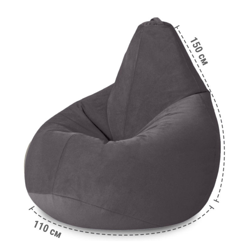Кресло-мешок груша Темно-серый, размер XХХXXL-Мега, велюр