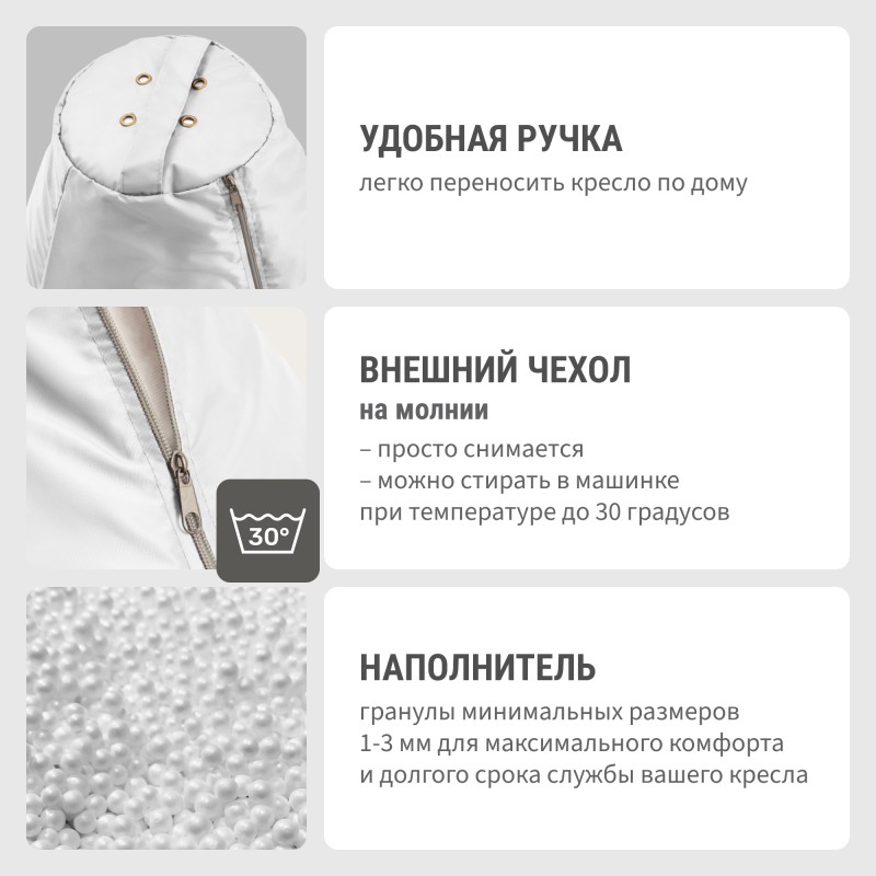 ◦ Легкость восстановления: При усадке пуфа, добавьте гранулы во внутренний мешок, и кресло станет как новое